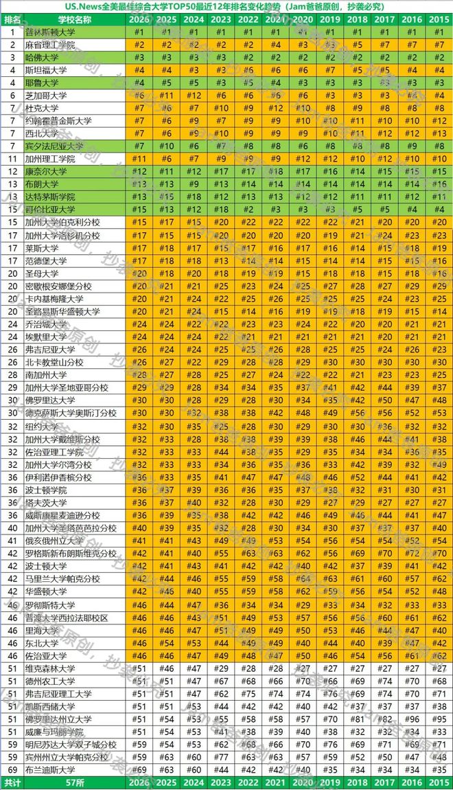 - 最新2026 USNews美国大学发布!普林保持第一CMU首进前20!2025-10-01
