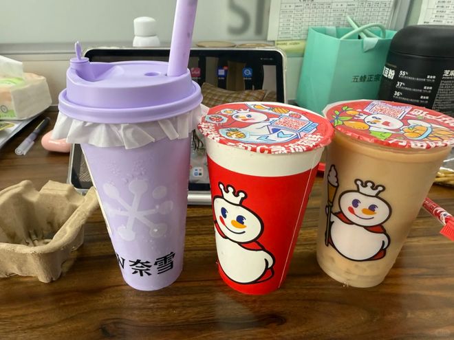这天下午,一位蜜雪冰城小哥提着一堆奶茶走进她的办公室。因为同事出差,办公室里只有她一个人。