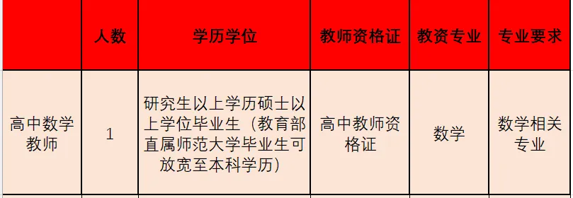 丽江市古城区第一中学2025年公开招聘公告。计划招聘紧缺急需高中教师1名,报名时间:2025年9月10日-9月30日。