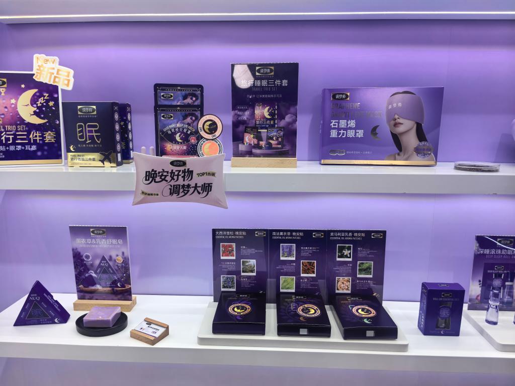 调梦师展台工作人员介绍说,2024年情绪相关的功能产品市场整体快速增长,改善睡眠、放松情绪等功能的香薰、贴片类产品增长尤为迅猛。